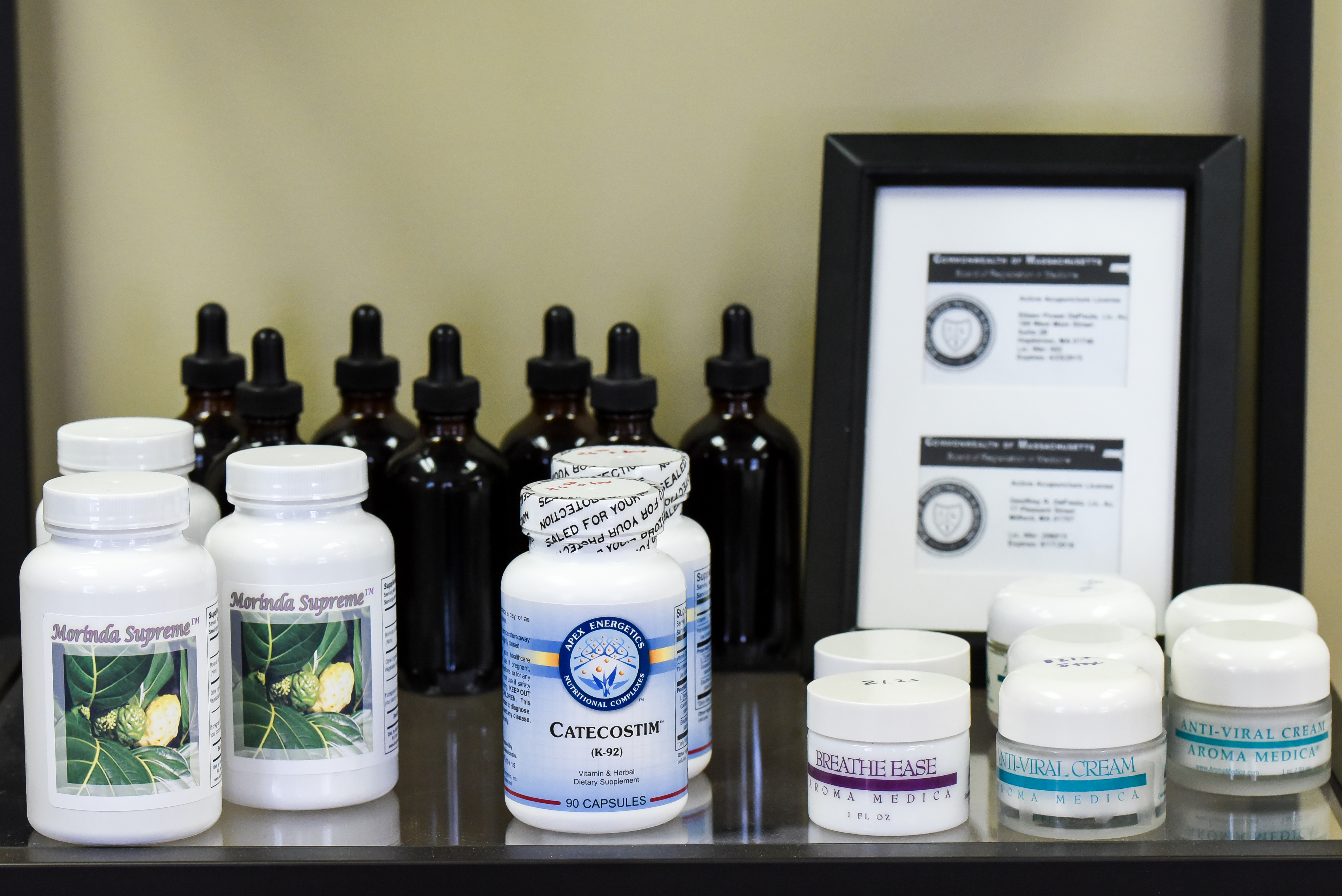 We keep a stock of May Way Chinese herbal patent medicines on site for common ailment prescribing. We are very careful to work only with lines of Chinese Herbs that are carefully sourced and free of contamination from pesticides. When custom prescribing, we use herbs from the KPC line of powder herbal medicines and use a local pharmacy to fill those prescriptions.